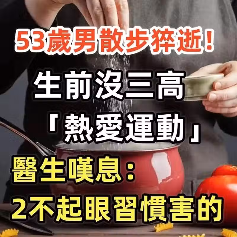 53歲男散步猝逝!生前沒三高「熱愛運動」, 醫生嘆息:2不起眼習慣害的!