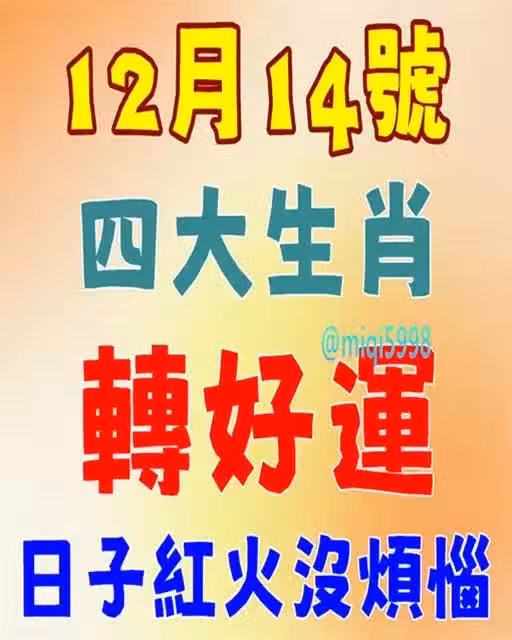 好消息來啦!如果你是這幾個生肖,那你可得聽好了,從12月14日起,你們的好運就像那冬天裡的一把火,燃得旺旺的,擋都擋不住!這波轉運潮,簡直就是給你們量身定製的幸福大禮包,準備好了嗎?咱們這就開箱!