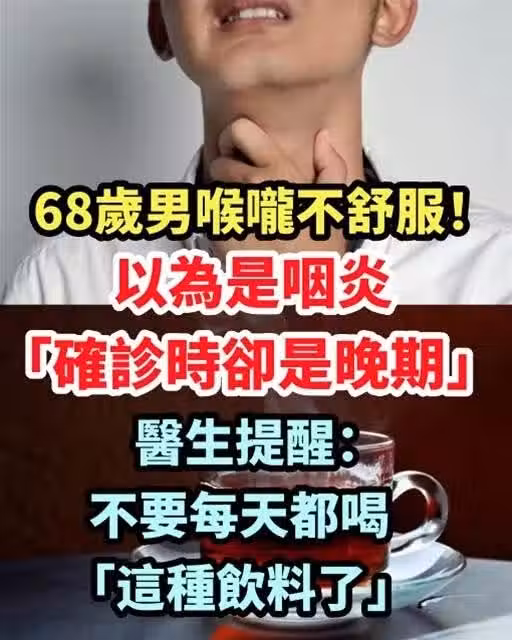 喉嚨不舒服以為是咽炎 ,68歲男「確診時卻是晚期」醫生提醒:不要每天都喝「這種飲料了」