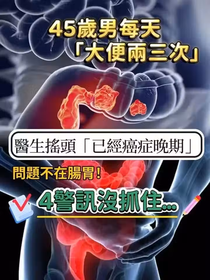 才45歲!他每天「大便兩三次」以為消化好,醫生搖頭「已經癌症晚期」4異常沒注意!