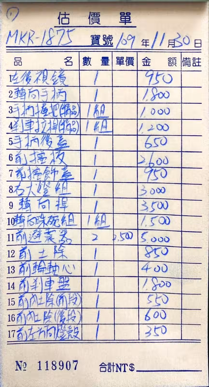 拿到帳單後,家人趕忙找懂機車的朋友諮詢,對方則表示「是灌水單,只擦碰一下怎麼可能修這麼多。」