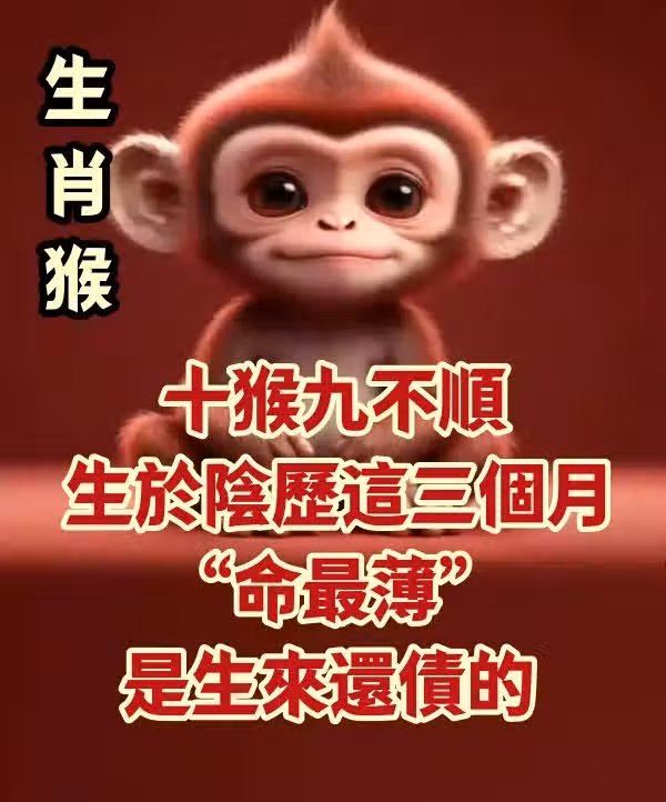 生肖猴:十猴九不順,生於陰曆這三個月「命最薄」,是生來還債的!