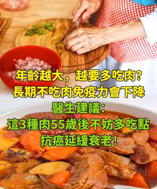年齡越大,越要多吃肉?「長期不吃肉」免疫力會下降 醫生建議:這3種肉「55歲後不妨多吃點」抗癌延緩衰老~