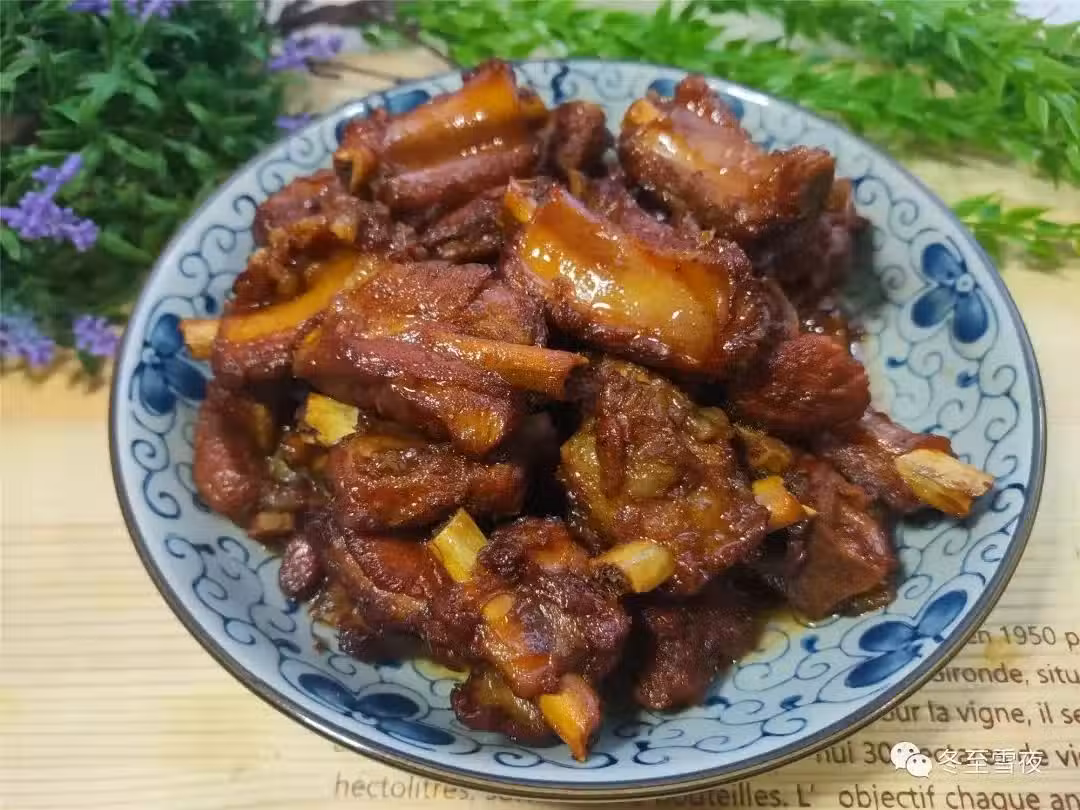 10.到時間後,加入鹽調味,用大火收汁,收至剩少許湯汁時,關火,盛出裝盤即可,一盤色香味俱全的紅燒排骨就做好了。