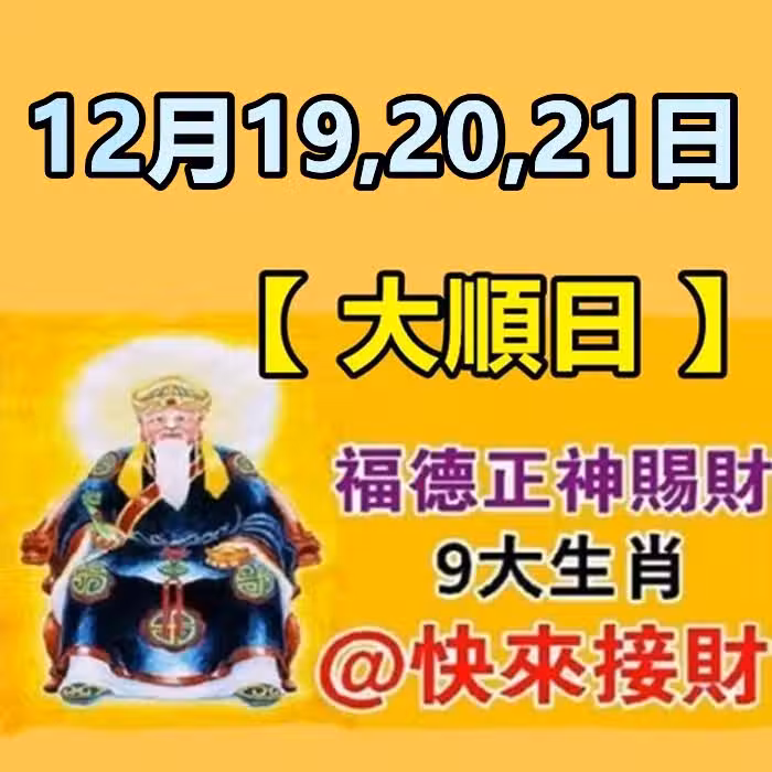 12月19,20,21大順日,福德正神賜財,九大生肖請接財