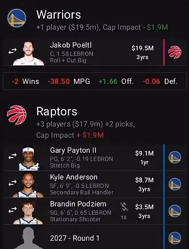 漂亮!美媒交易方案:勇士送出波傑姆,4換1迎強力中鋒!太划算了