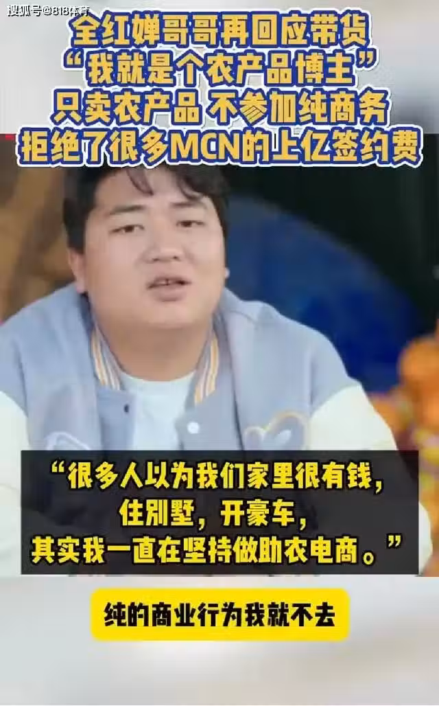 全紅嬋哥哥:我就是個賣農產品的三農博主 不想靠妹妹的名氣恰飯~