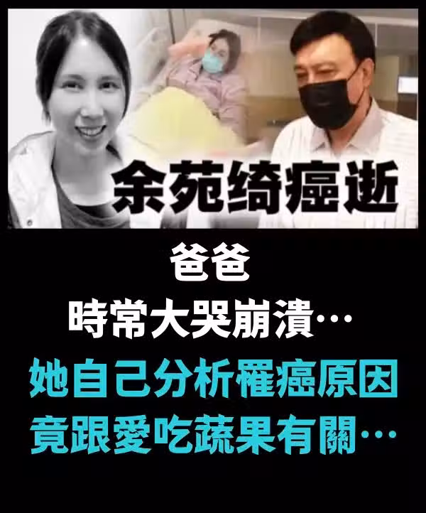 「余苑綺」得癌症去世後,爸爸時常大哭崩潰…她自己分析罹癌原因,竟跟「愛吃蔬果」有關…
