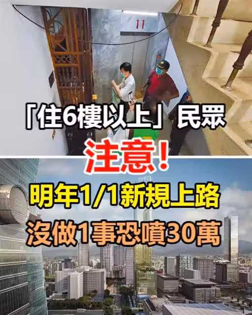 「住6樓以上」民眾注意!明年1/1新規上路,沒做1事恐噴30萬