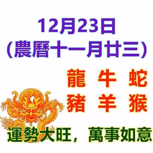 小運播報:2024年12月23日,星期一,農曆十一月廿三,法定工作日。