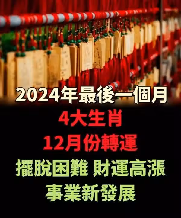 2024年最後一個月,12月份擺脫困難,財運高漲,事業新發展,轉運的4大生肖