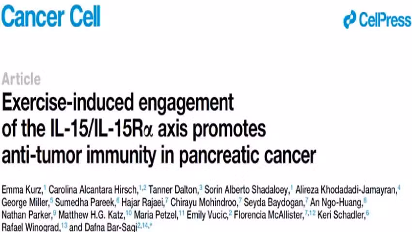 胰腺癌一直被認為是極難治癒的癌症之一,但在2022年6月國際頂尖腫瘤學期刊 Cancer Cell 一篇關於胰腺癌治療的相關報告顯示運動有助於胰腺癌的治療。