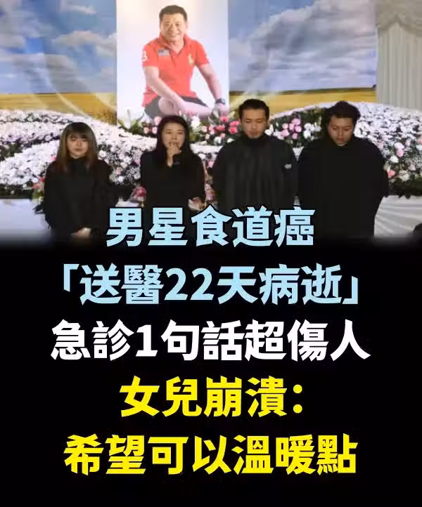 男星食道癌「送醫22天病逝」!急診1句話超傷人 女兒崩潰:希望可以溫暖點.