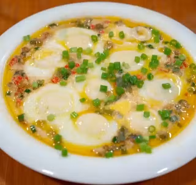 2、打入八個雞蛋,放鍋里蒸15分鐘,做法簡單,超級下飯。