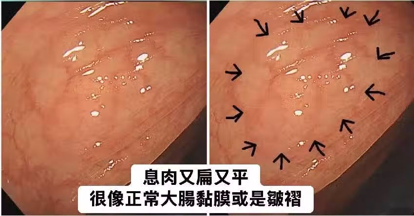 沒想到一照大腸鏡,竟發現大腸內布滿二十多顆扁平狀息肉,每一顆都是具有相當高癌化風險的「鋸齒狀息肉」,這疾病又被稱為「鋸齒狀息肉症候群」,目前確切病因尚未明朗,但已知該疾病與家族遺傳有密切關係,患者體內往往存在特定基因突變,而且家族成員罹患大腸癌的機率高達五成以上,患者本身日後發展成大腸癌的機率也有兩成!