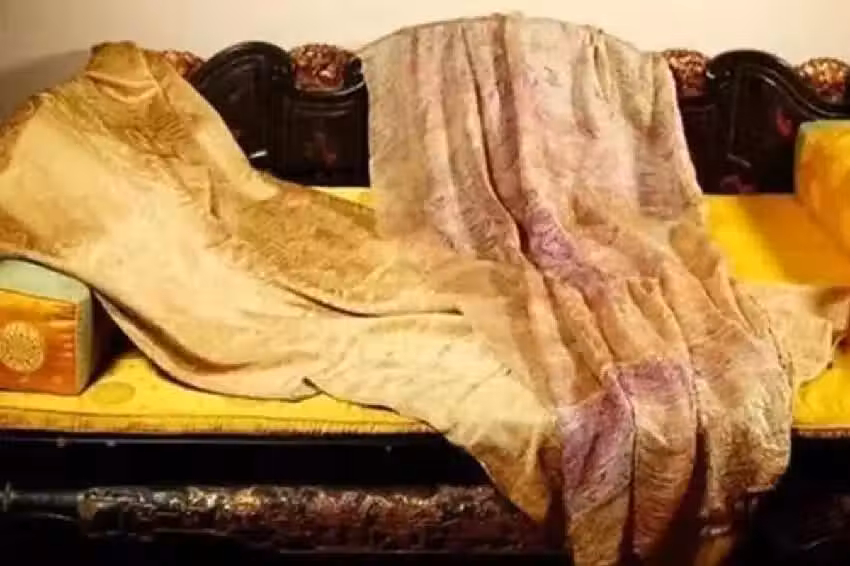 2005年,一件舊袈裟在北京拍賣,無人問津,一男子覺得蹊蹺、花了9萬人民幣(約新台幣40萬)買下,回家後發現,袈裟內有隔層,剪開一看,竟裝著一塊舊被子。