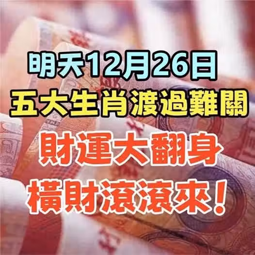 明天12月26日,五大生肖渡過難關,財運大翻身,橫財滾滾來!