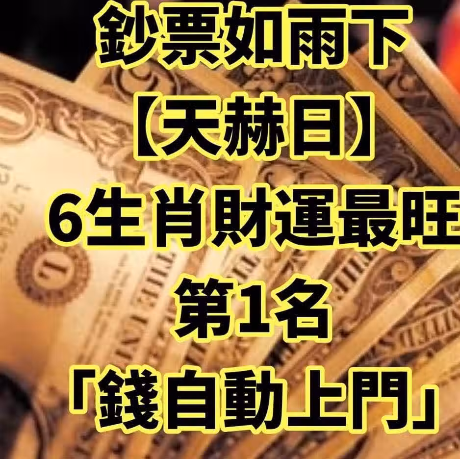 鈔票如雨下!【天赫日】6生肖財運最旺,第1名「錢自動上門」