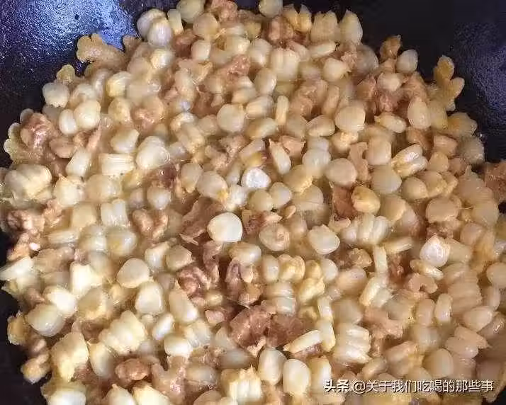 1、買一根新鮮的玉米,剝出玉米粒,倒入開水中煮10分鐘,撈出瀝干水分,加入一勺澱粉,用筷子攪拌均勻,裹上一層薄薄的澱粉。