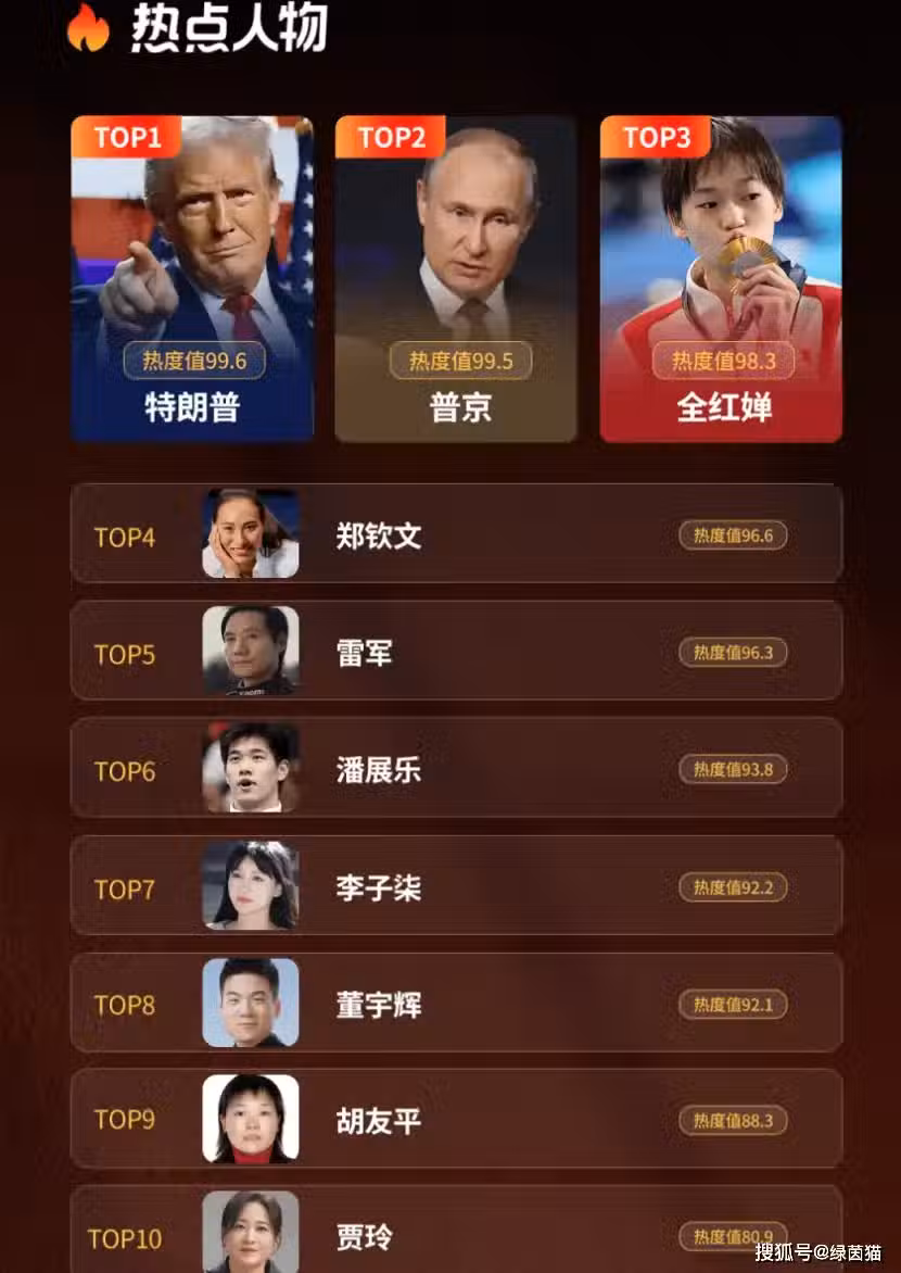 克勞銳發布《熱搜年度報告》顯示,這一年網絡用戶關注的體育人物,第一名屬於中國跳水冠軍運動員全紅嬋,她的熱度值高達99.9,同時在年度最受網絡用戶關注的熱點人物,全紅嬋排名第三,僅次於特朗普和普京。