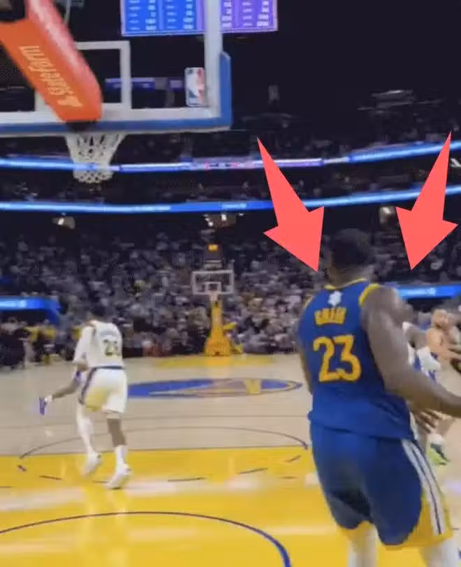 換個底線的角度看得更清楚,本來當時里夫斯上籃命中之後。追夢格林想要快發底線球,詹皇二話不說直接往庫裡面前猛衝。也不說什麼慶祝不慶祝了,就是不能讓庫里拿球出手,這才是相比於其他隊友,詹皇做得最好的一個動作。