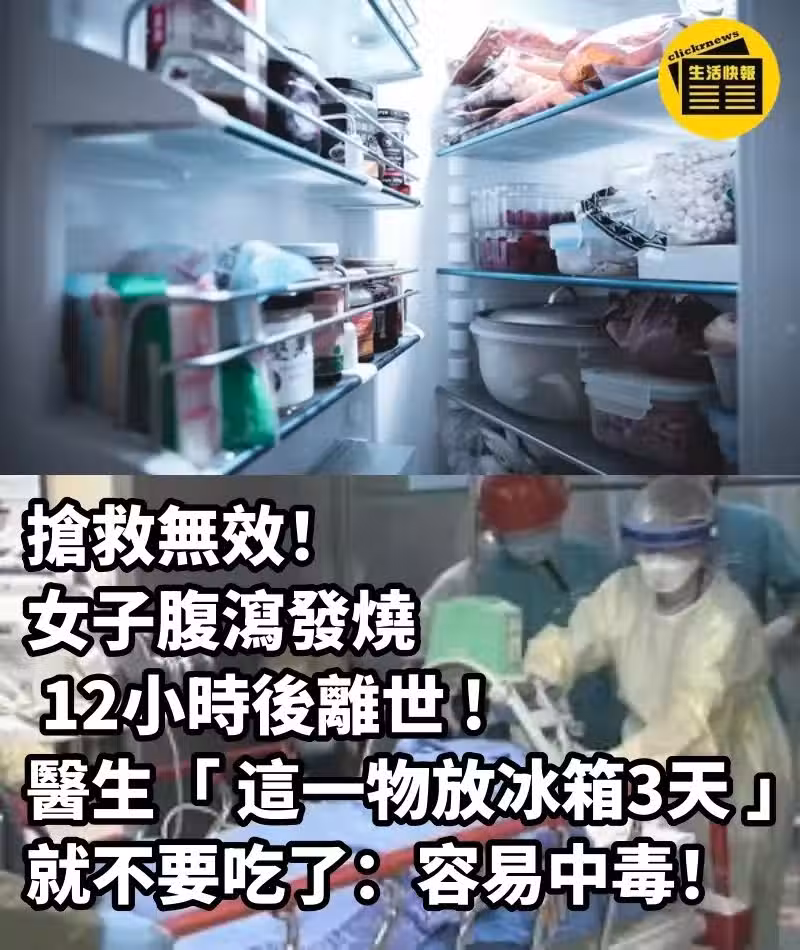 搶救無效!女子腹瀉發燒「 12小時後離世 」 醫生「 這一物放冰箱3天 」就不要吃了:容易中毒!