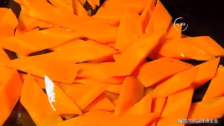 第三步:鍋中放入一點點油,然後把油溫燒到6成熱時,把胡蘿蔔、食鹽放入到鍋中,用大火持續不斷的翻炒,直到將胡蘿蔔炒到斷生即可起鍋。