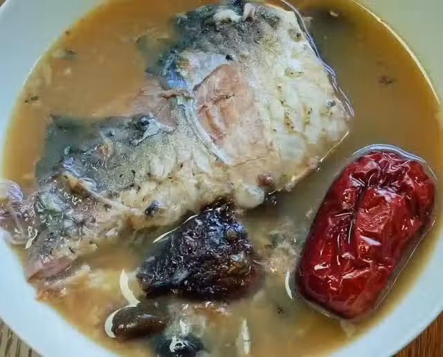 食材:鯽魚1條、黑豆30克、紅棗6顆、陳皮1塊、姜2片