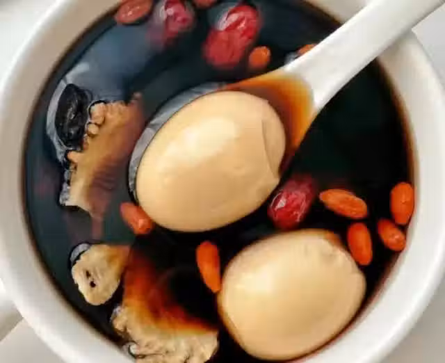 5、最後加入適量的紅糖調味,再煮5分鐘左右,讓紅糖充分融化即可。這樣,四物湯煮雞蛋做好了。這道食物有一定的滋補氣血的作用。