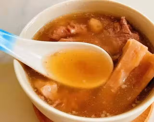 3、煲好加鹽調味即可,藕香濃郁,湯超贊!全身是寶的蓮藕還可以與多種食材煲出靚湯,粉藕湯生津養血,潤肺養顏!