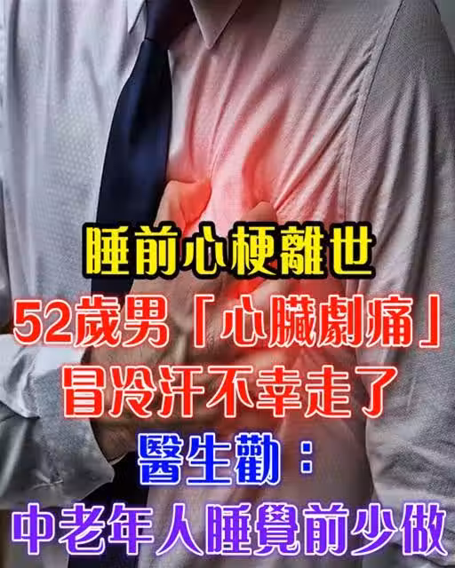 睡前心梗離世!52歲男「心臟劇痛」,冒冷汗不幸走了, 醫生勸:中老年人睡覺前少做~