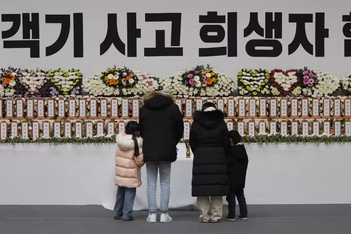 韓國民眾30日前往務安體育公園的紀念壇悼者空難遇難者。(圖/美聯社)