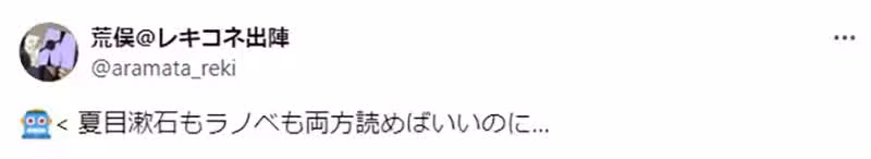 「夏目漱石的書我幾乎全都看過了,登場人物常常都是中年,所以我覺得或許也要中年以後再看,比較會產生共鳴吧。雖然文章本身的確滿平易近人,除了少數特殊的語調之外,國中生也可以看的懂。《三四郎》之類的主角也是年輕人,應該比較可以推薦給國高中生。」
