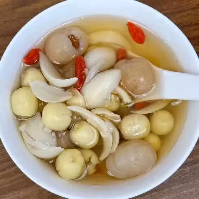 除枸杞,將所有材料放入鍋中,加入足量清水。大火煮沸後轉小火燉煮50分鐘,再撒入枸杞,加入冰糖調味即可。