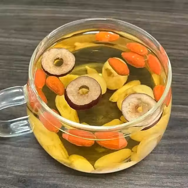 將所有材料放入鍋中,加入足量清水。大火煮沸後轉小火燉煮30分鐘,撒入枸杞,燜2分鐘,即可飲用。