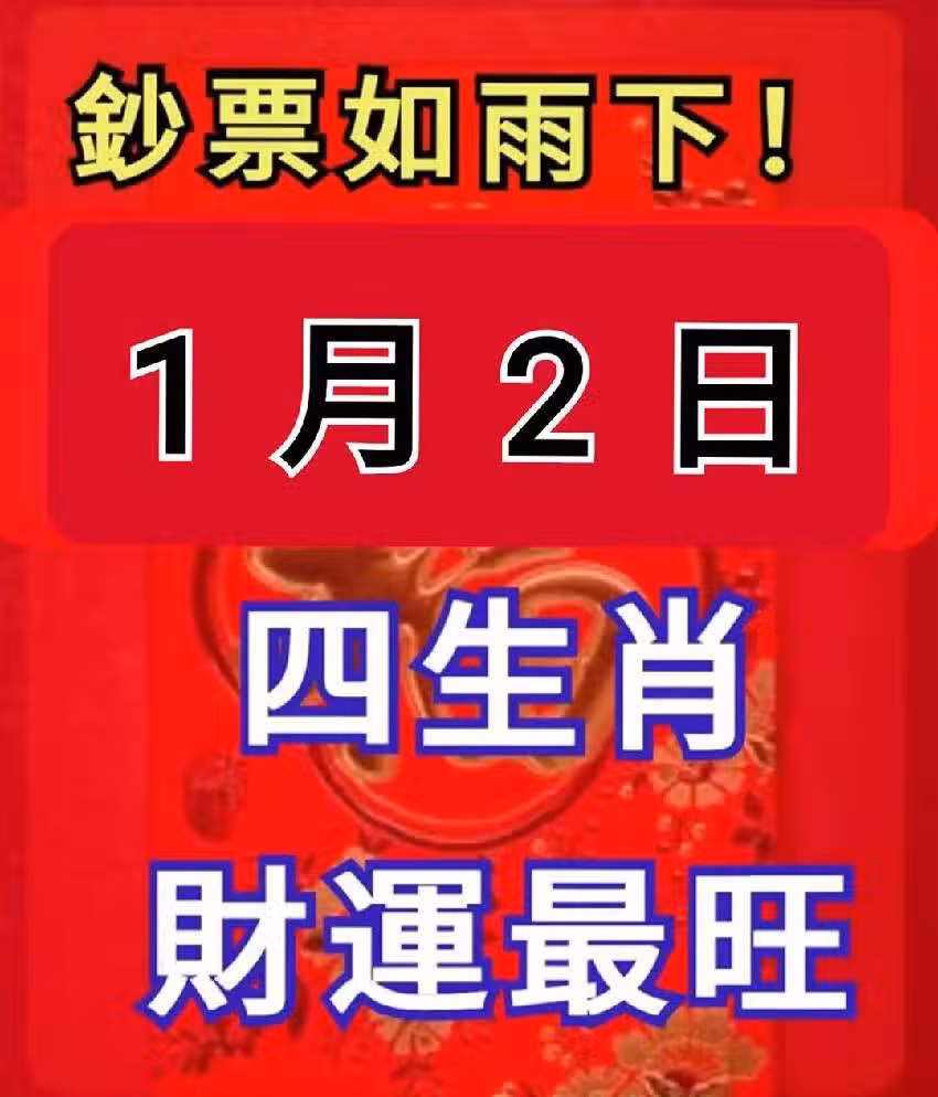 鈔票如雨下!1月2日 四生肖 財運最旺