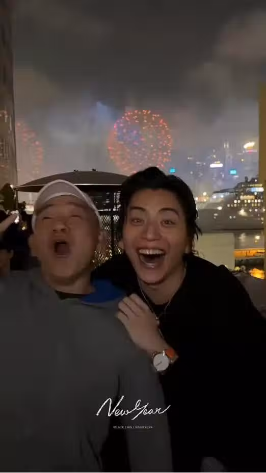事後開心的王大陸也把視頻上傳到了社交平台,並祝大家新年快樂,從他上傳的視頻中可見,王大陸應該是喝過酒,他的面部紅粉菲菲,在看到維港的煙花後更像小孩子似的跳起舞來非常開心。