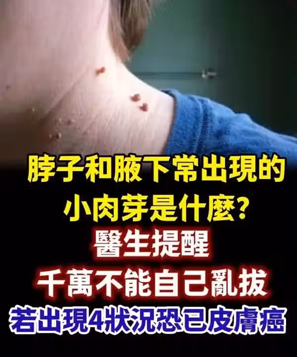 脖子和腋下常出現的「小肉芽」是什麼? 醫生提醒「千萬不能自己亂拔」:若出現4狀況恐已皮膚癌