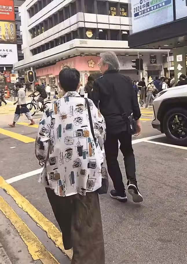 77歲姜大衛與老婆手牽手逛街!老夫老妻邊走邊說笑,金婚仍然甜蜜