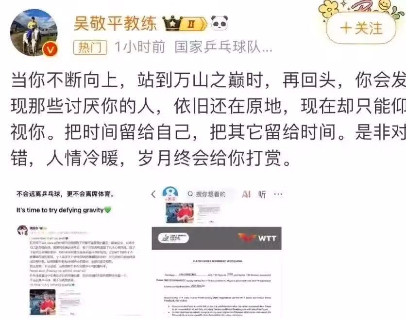 當WTT的新規要求不參賽選手承擔高額罰款時,他們選擇用退出世界排名的方式,表達對不合理制度的抗議。