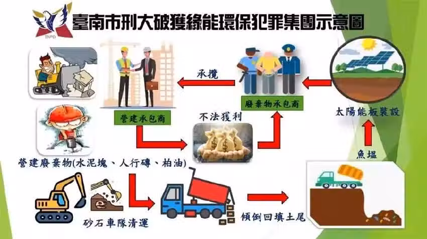 案經台南市政府警察局刑事警察大隊報請台灣南地方檢察署法股主任檢察官劉修言及孝股檢察官林昆傷指揮部偵辦,於113年8月至11月持搜票(51張) 、拘票及傳票,共搜索57處所及傳拘68人到案,共拘押許姓犯罪嫌疑等6人,並持續持續溯源追查營建發行來源。