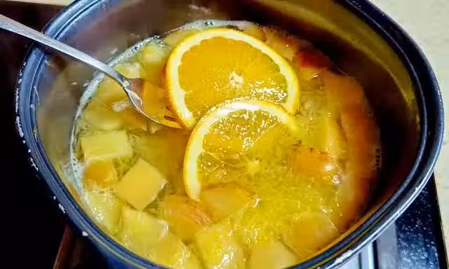 1. 將蘋果和橙子洗凈,分別切成小塊和片,將切好的蘋果塊和橙子片放入一鍋中,加入足夠的清水,使水覆蓋果塊。