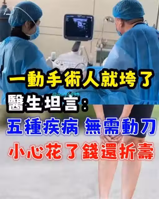 一動手術人就垮了?醫生坦言:「五種疾病」無需動刀 小心花了錢還折壽