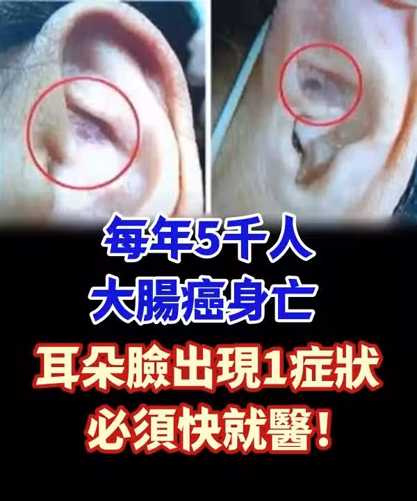 每年5千人大腸癌身.亡 「耳朵、臉出現1症狀」必須快就醫!