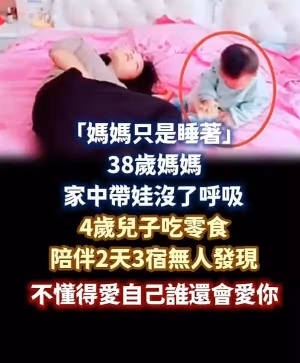 「媽媽只是睡著」38歲媽媽家中帶娃沒了呼吸,4歲兒子吃零食陪伴2天3宿無人發現:不懂得愛自己誰還會愛你