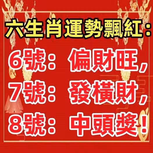 六大生肖運勢飄紅:1月6號偏財旺,7號發橫財,8號中頭獎 !