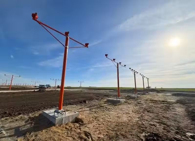 那個固體建築立面是儀表著陸系統(Instrument Landing System,ILS),是為飛機安全降落提供精密引導的一套天線設施。