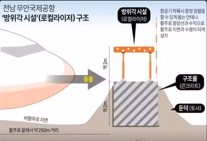 誰也沒想到的是,務安機場的這一堆天線設施卻被安到了地面以上,還在下面建了一個高2米,厚4米的巨型水泥基座。