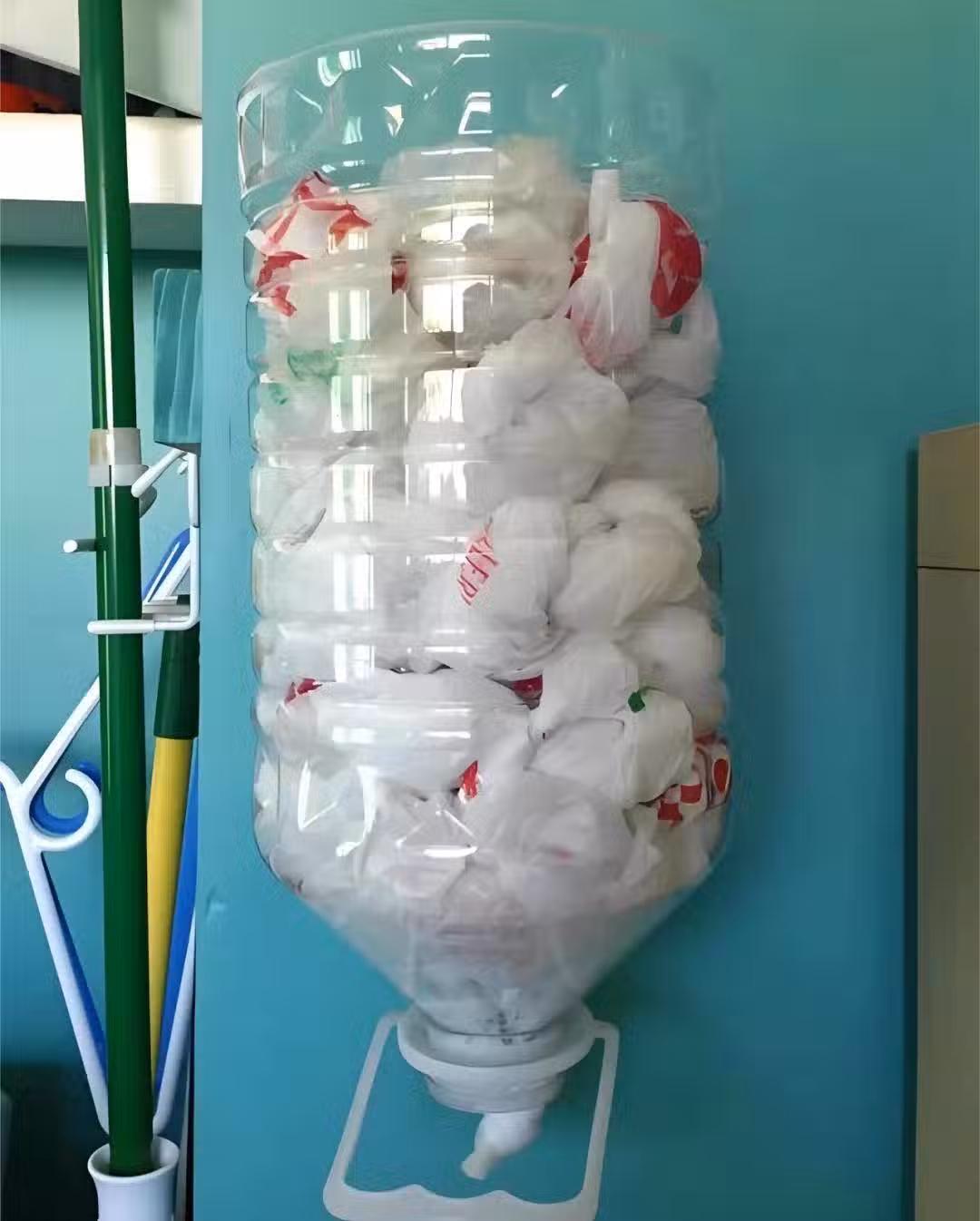 那為什麼不學學現在的年輕人,只需要用家中喝礦泉水,剩下的礦泉水桶,就可以自制一個塑料袋收納,方便又好用。