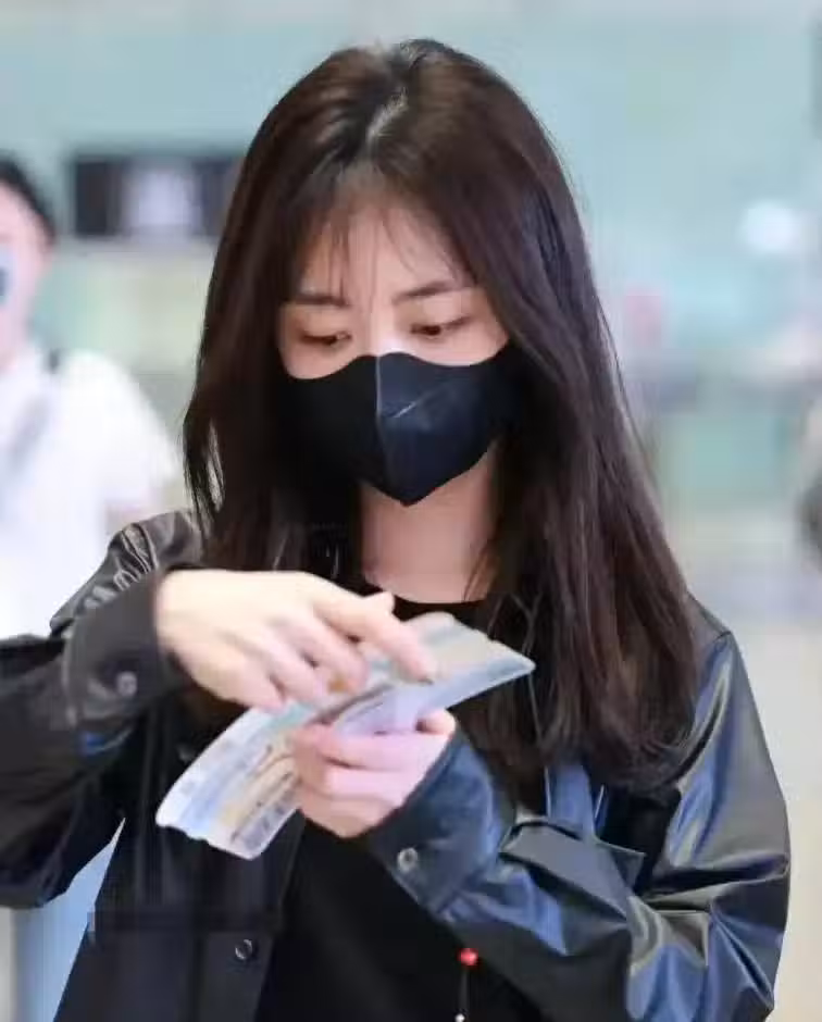 34歲譚松韻穿著黑色皮衣+牛仔褲,宛如18歲少女**